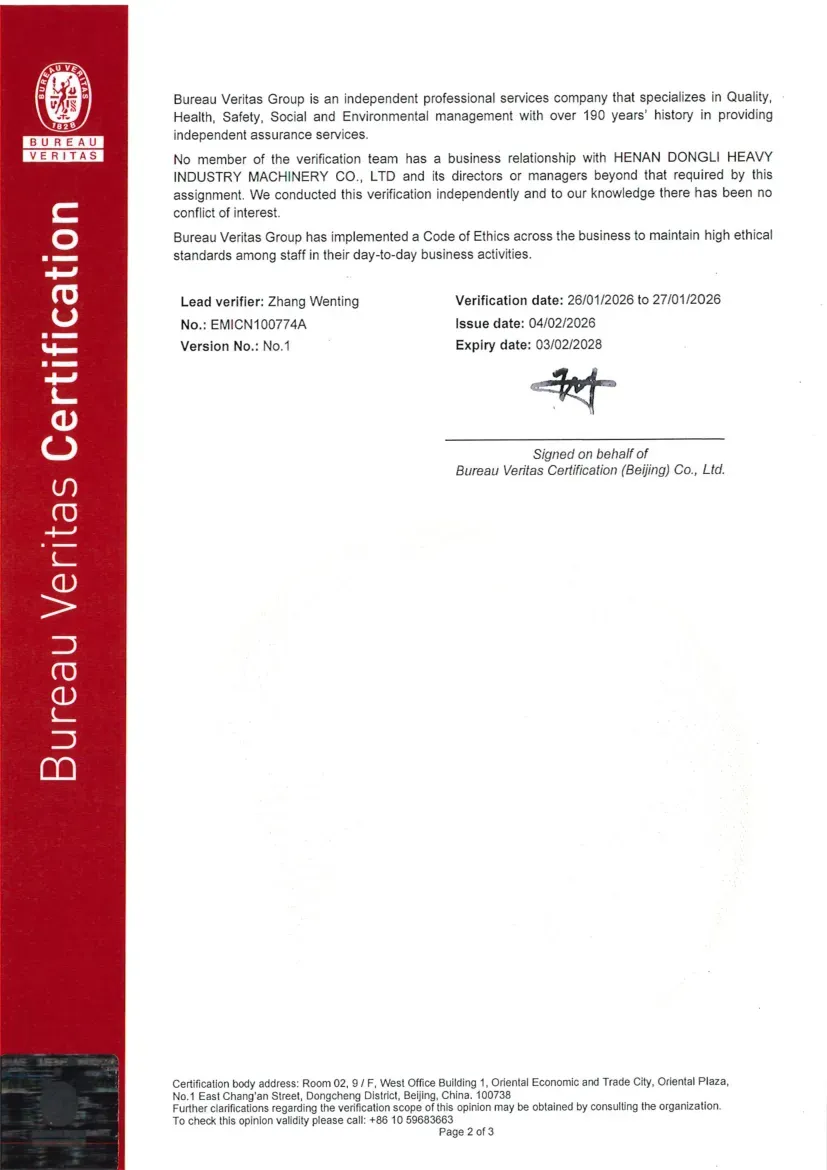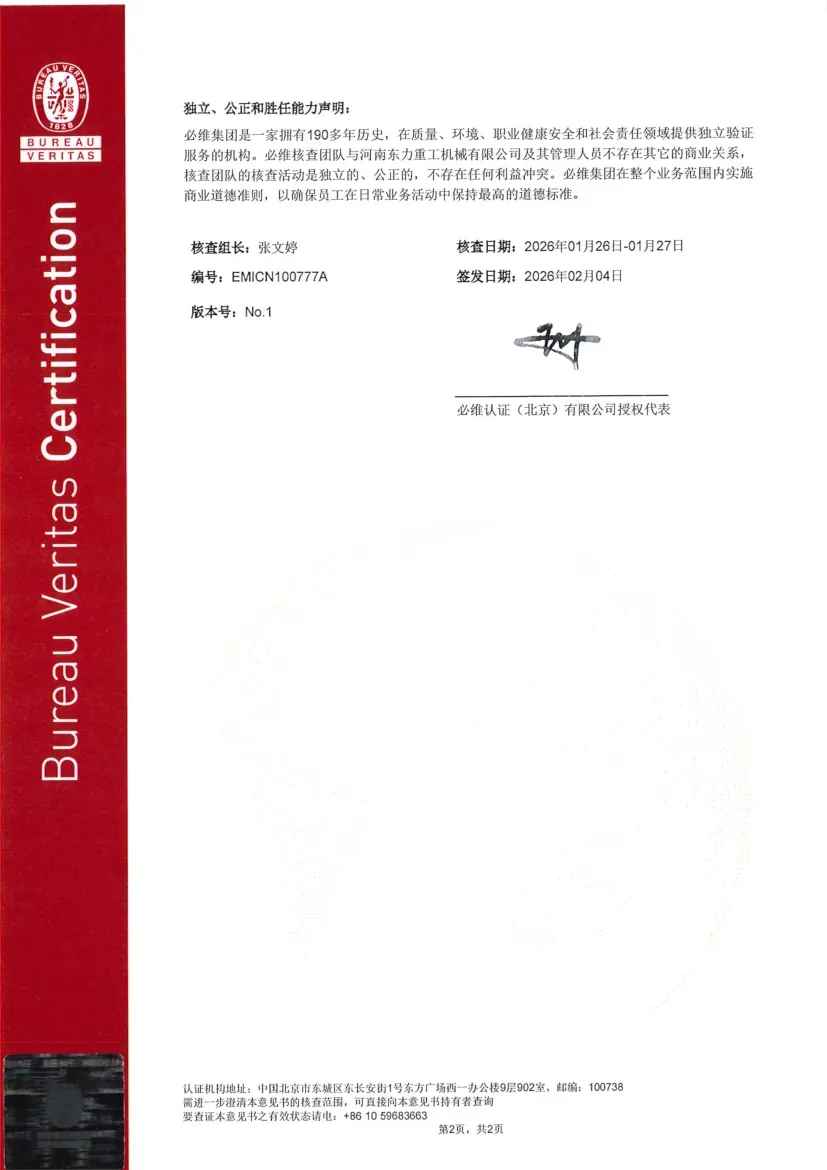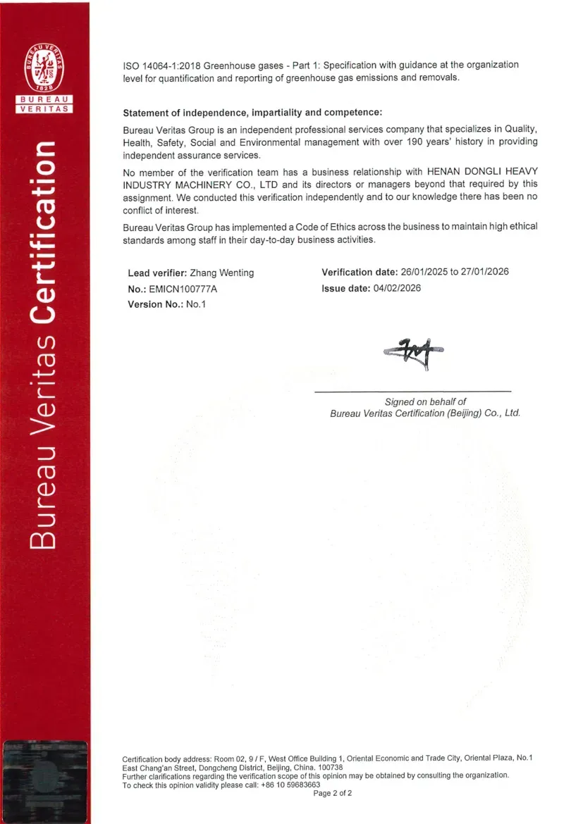 This series of certifications not only demonstrates Dongli Heavy Industry is profound foundation and strength in green manufacturing and sustainable development, but also provides strong green endorsement for enterprises to participate in international competition. By accurately quantifying greenhouse gas emissions and product carbon footprint, Dongli Heavy Industry will further optimize production processes, reduce environmental impact, and promote the upstream and downstream of the industrial chain to jointly move towards a low-carbon future.