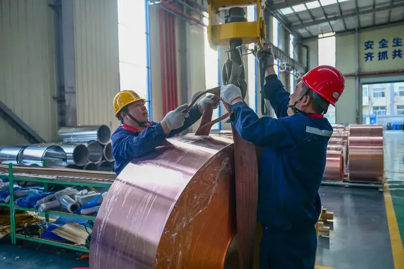 2 On the 17th of this month, Luoyang Dongli New Materials Technology Co., Ltd., located in Xigong District, Luoyang City, staff were producing a batch of copper strips, copper belts and aluminum belt products.