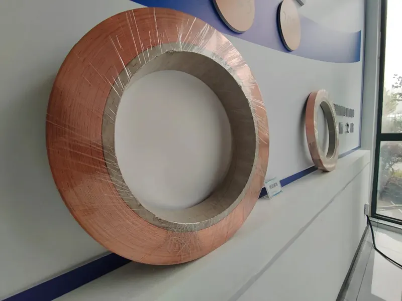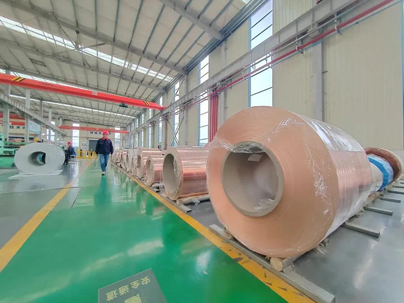 In the delivery area, rolls of copper and aluminum strips are ready for dispatch. Touching the edge of the strip, it is smooth and round, and there is no roughness at all.